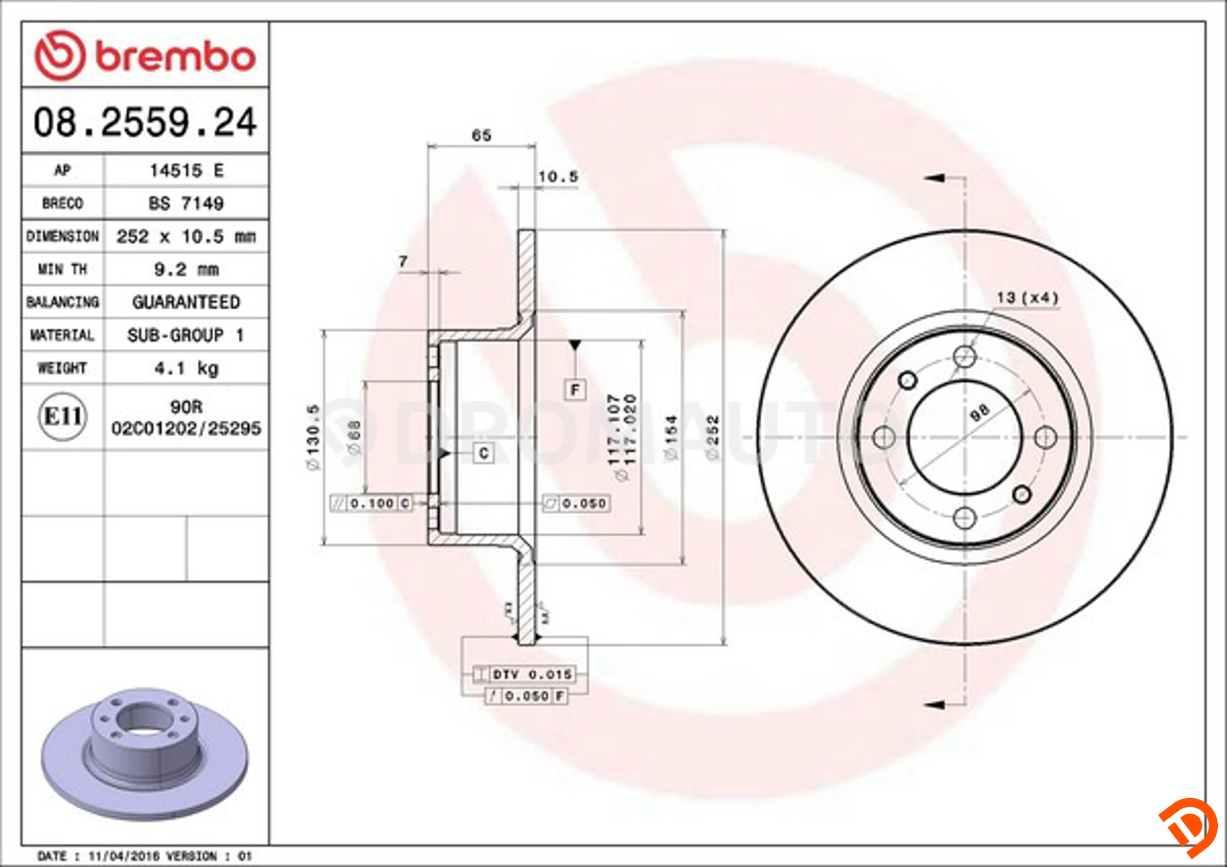 Как заказать товар «Диск тормозной Standard | перед |», Артикул: 08255924, Бренд: BREMBO в интернет-магазине DROMAUTO.KZ