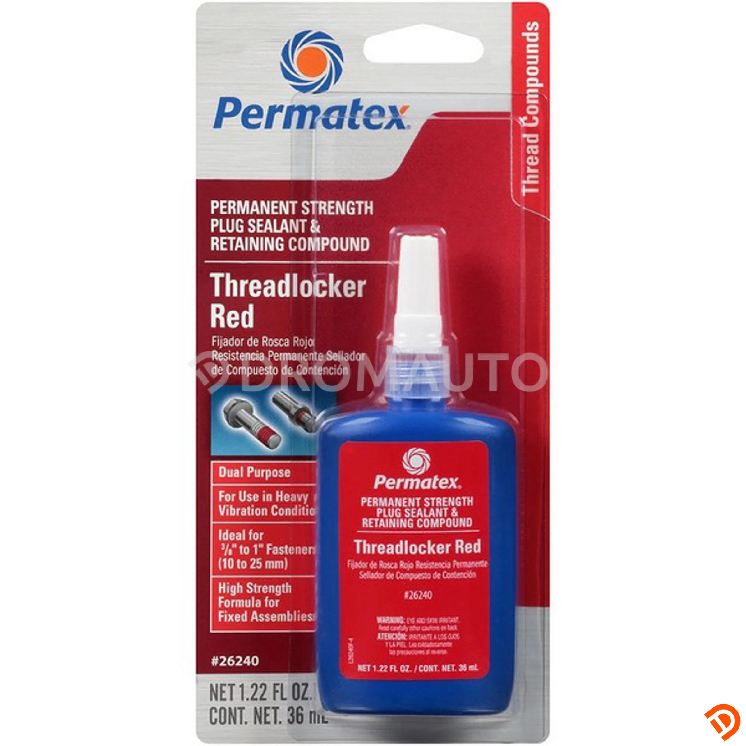 Как заказать товар «Фиксатор резьбы и цилиндрических деталей КРАСНЫЙ - неразъемная фиксация Permanent Strength Threadlocker RED & Cup⁄Core Plug Sealant Retaining Compound, 36мл», Артикул: 26240, Бренд: PERMATEX в интернет-магазине DROMAUTO.KZ